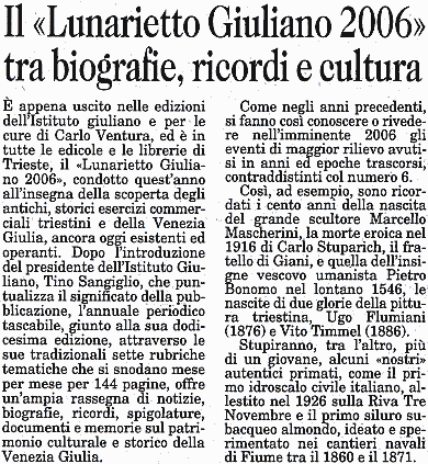 Così scrive della pubblicazione il Piccolo di Trieste il 19 dicembre 2005 |